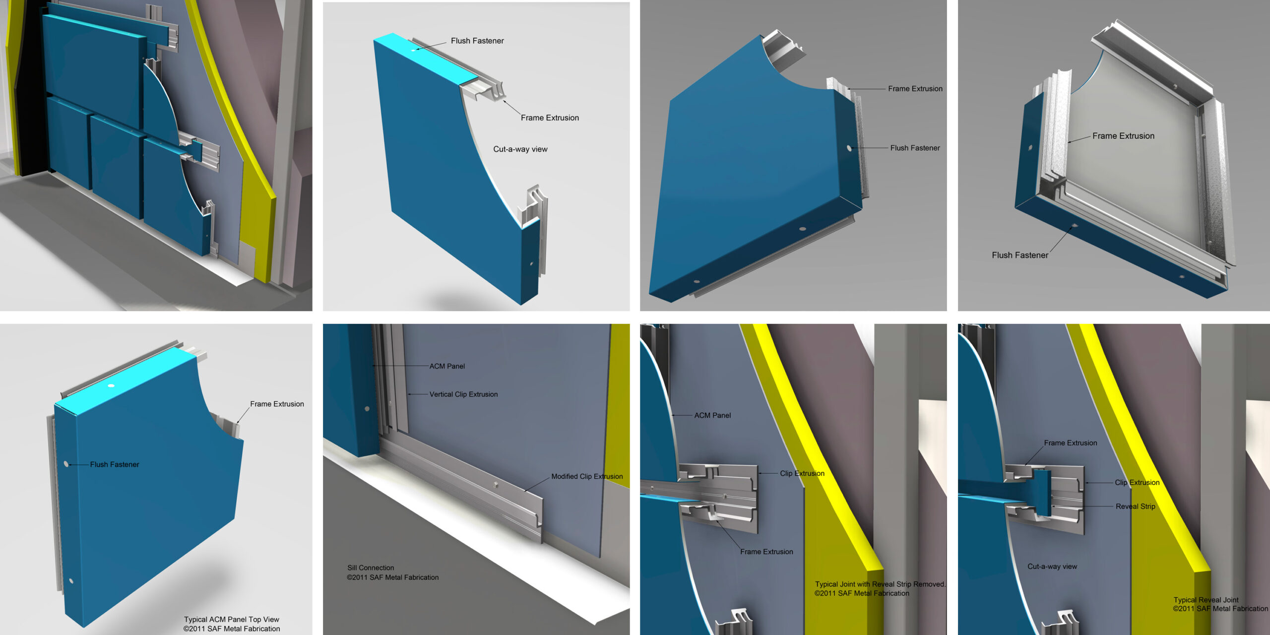 SAF is a mill-direct aluminum buyer, an approved fabricator for major Aluminum Composite Panel (ACM) manufacturers, and a mill-direct buyer of aluminum coil and extrusions. In addition to providing custom fabrication, painting & anodizing, SAF Metal Fabrication engineers aluminum, panel and column systems for commercial building projects.